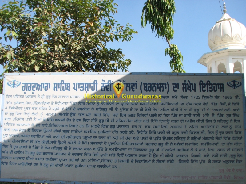 गुरुद्वारा श्री पातशाही नौवीं साहिब, ढिलवां गांव ढिलवां जिला बरनाला में स्थित है। श्री गुरु तेगबहादुर साहिब जी हंडिआया से धौला, सोहिआना साहिब होते हुए यहां आए। गुरू साहिब सबसे पहले गांव कैलोन में आए, लेकिन लोगों ने उनकी परवाह नहीं की। तत्पश्चात गुरू साहीब गांव ढिलवां में आए। भाई माधो जी मूल रूप से गांव सुरसिंह वाला तहिसील पट्टी से थे, जो यहाँ बसे थे और उन्होंने गुरू साहिब से मुलाकात की और वहाँ रहने के लिए आग्रह किया। यहां गुरू साहिब मालवा क्षेत्र में सबसे लंबे समय तक रहे। लोगों को सिखाई शिक्षा देने के अलावा गुरू साहिब ने लोगों को अन्य घरेलू समस्याओं को हल करने में भी मदद की। गुरू साहिब को पानी की समस्या के समाधान के लिए कई कूंये लगवाये। गुरू साहिब ने दूध की समस्या को हल करने के लिए कुछ गायों को गरीब लोगों में वितरित किया।